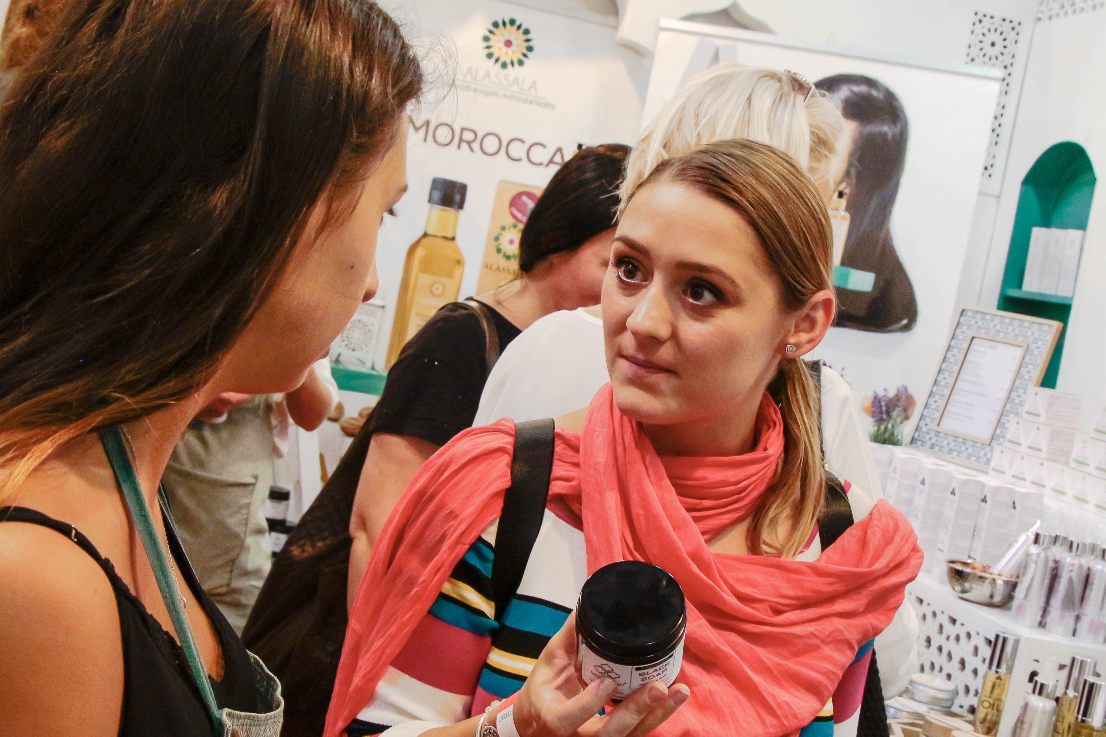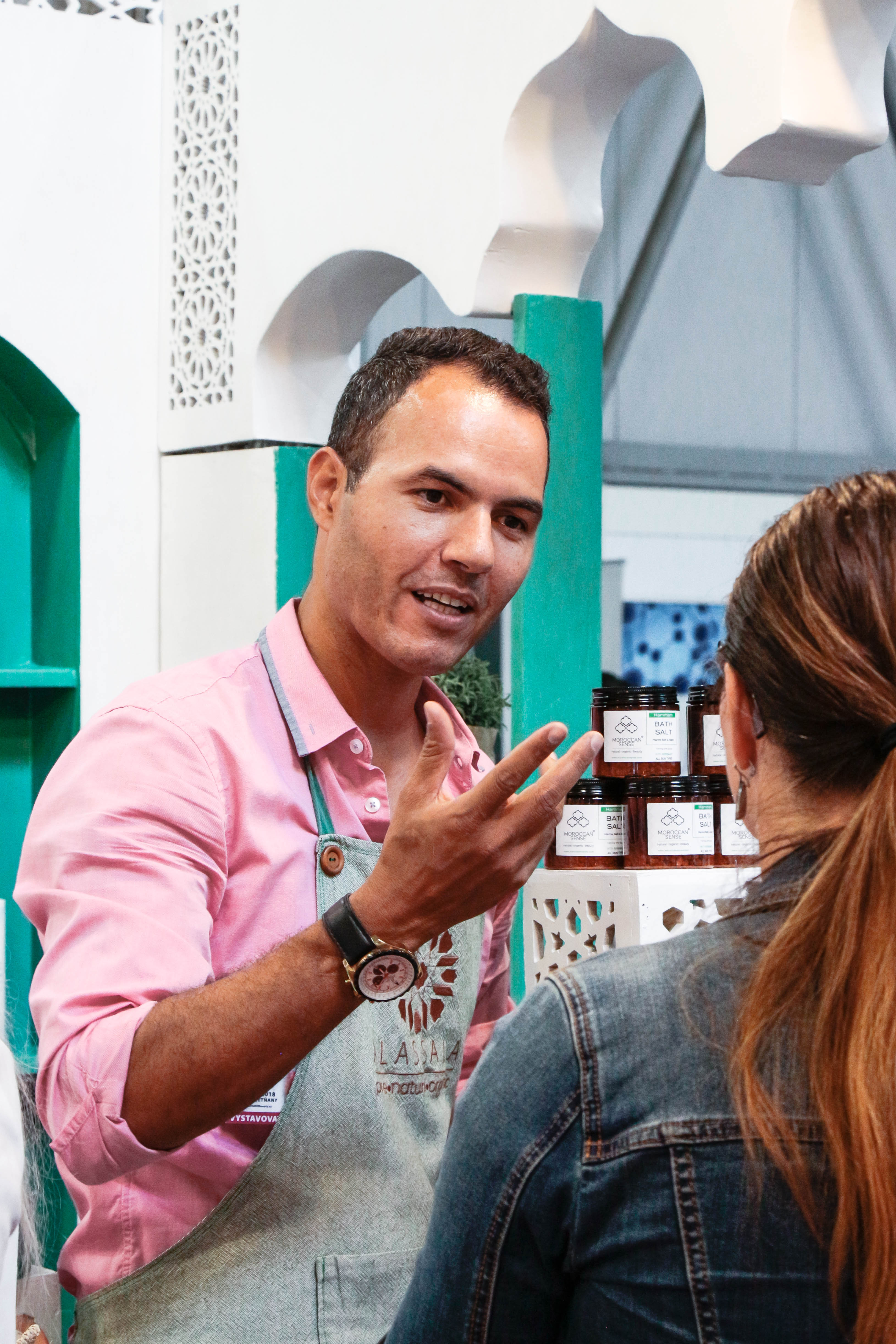 Velikou radost máme z toho, že jsme také popracovali na našem stanu, kde výrobky prezentujeme. Kulisy expozice už nebyly jen bílé, ale přidaly jsme k nim i do petrolejové laděné prvky, které lépe odráží naši současnou vizuální identitu. Více jsme pracovali s rozmanitými dekoracemi v marockém stylu a stánek opravdu poutal pozornost, protože u nás bylo téměř stále plno. Lidé byli zvědaví a originální vzhled i prezentace je přilákaly. Navíc bychom na tomto místě moc rádi poděkovali všem, kteří nám pomáhali, protože bez nich by tu rozhodně nebyla tak příjemná atmosféra, kterou samozřejmě zachytili i návštěvníci, kteří u nás setrvali pár vteřin nebo klidně i půl hodiny.