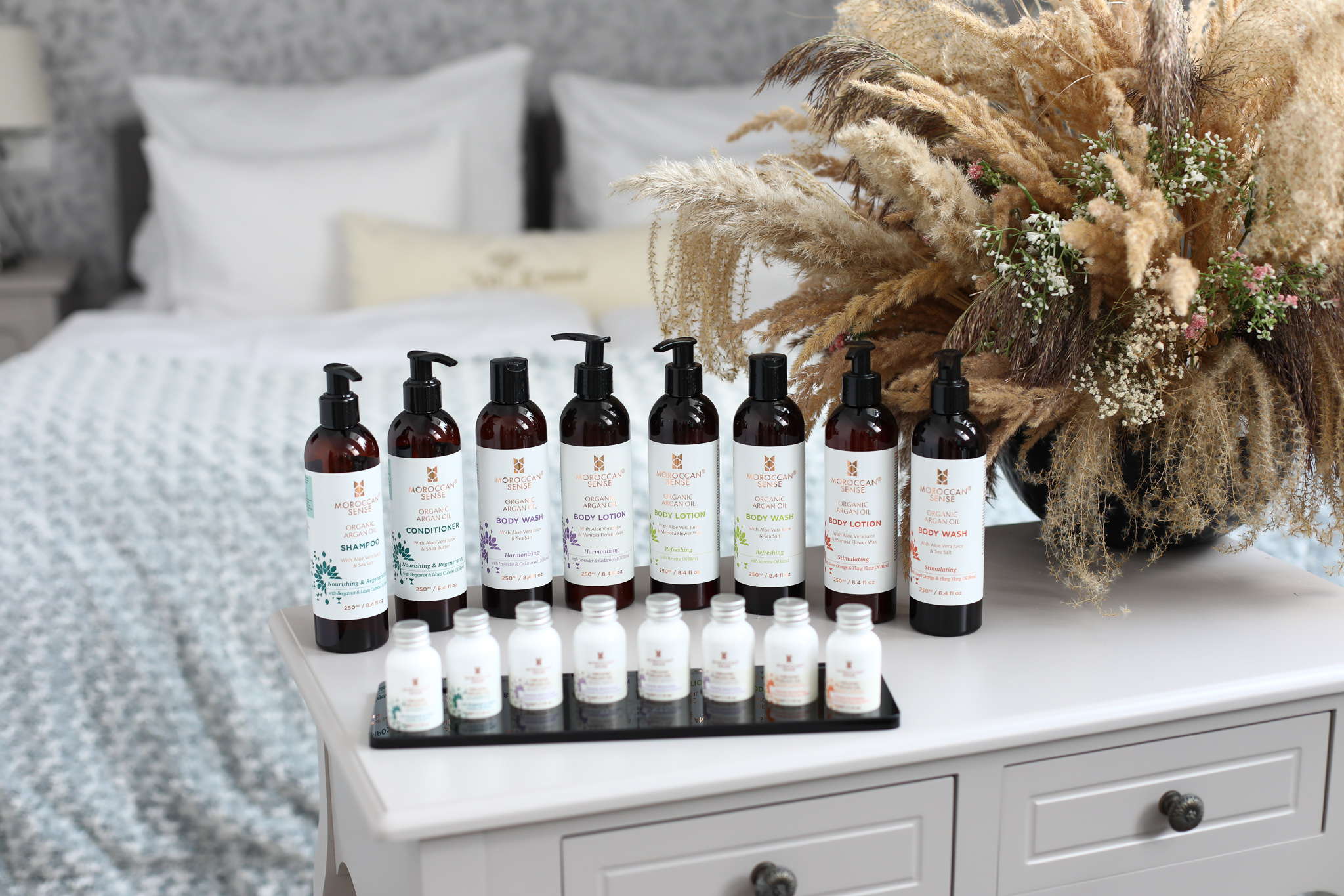 The hotel set includes hand care products with the scent of lemongrass and bay laurel. The body shower gel and milk is available in sweet orange and ylang. The hair line in the form of shampoo and conditioner carries the scent of exotic bergamot with laurel. The composition of all products is of organic quality. This may be the main reason to choose such unique hotel products nowadays. The gentle composition is recognized by the guest at the first shower. If they interest him so much that he wants to take them home with him, he can purchase the products at the reception and repeat this exceptional experience at home.
